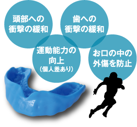 マウスピースを装着することで歯が折れたり、唇や舌・頬の粘膜の外傷、そして脳震とうなどの発生率や重篤度を低減することができるのです。